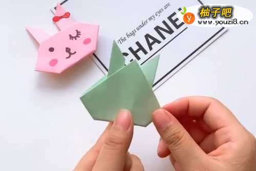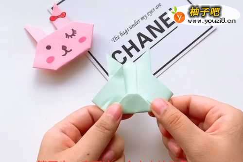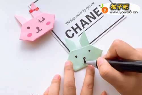 6用画笔画上漂亮的眼睛,嘴巴,耳朵涂颜色等,一直可爱的折纸小兔就完成了。喜欢的话赶紧行动起来吧。
