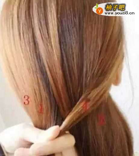 2再从1、2两侧各取一股头发(不用取太多头发,一小股就好),分为标为3、4;