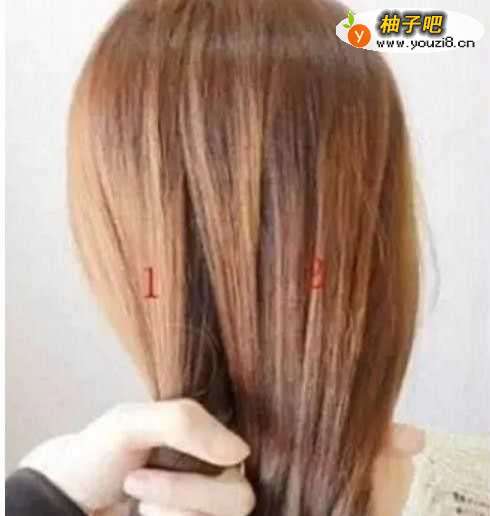 把需要编四股辫的头发集中,先分成等量的两股,我们把它们标为1、2;