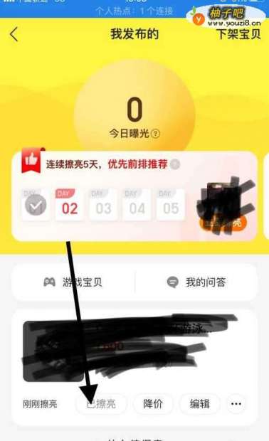 6最后就可以看到自己的物品了,在物品下方点击“擦亮”,点击完成变成“已擦亮”,这样你物品就会排名靠前,从而增加浏览,更容易卖出去,每天都有一次擦亮机会。学到的给个赞呗。