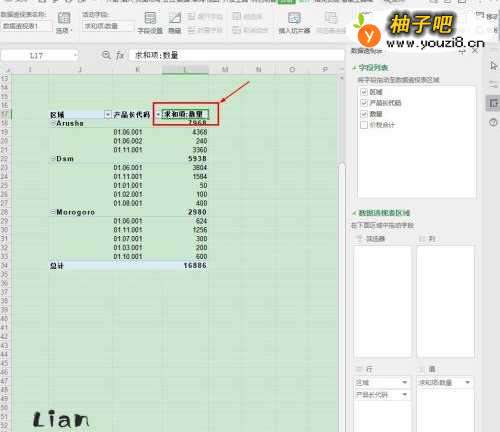 2选择数据透表的【数据单元格】,如:L17;