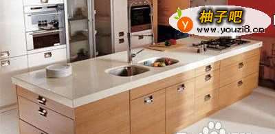台面:应选用防火、防水材料制作台面。台面的高度应以家里最常做饭的人的身高为依据来确定。通常操作台的高度为80~84厘米;水槽两侧应有一定位置的操作台,以方便干净东西和不干净的东西分开放置,那么灶台边上也是同样的道理,两侧应留有操作台,用来暂时放刚出锅的菜。台面的背面和两侧要做后挡水和侧挡水,做后挡水和侧当水的好处是防止水流到橱柜的背面,使基材膨胀,发霉等现象。