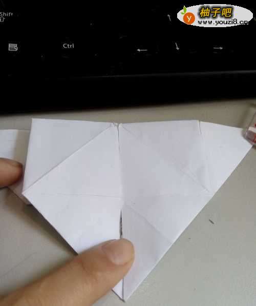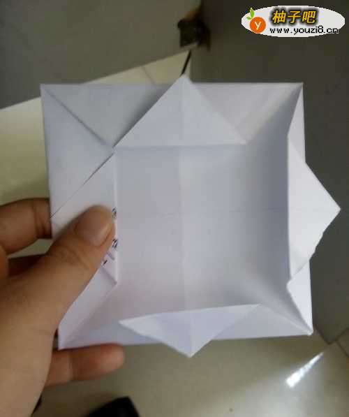 11然后将整个折纸模型进行对折,再进行一次反向的对折。