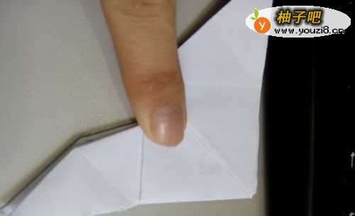 10接着将折纸中间部分的左右两个角分别向内折叠一个较小的幅度。