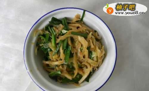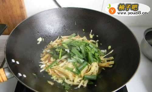 10放入韭菜段。