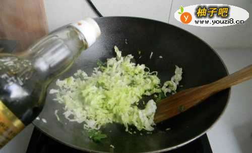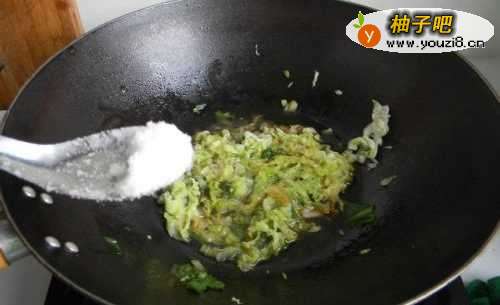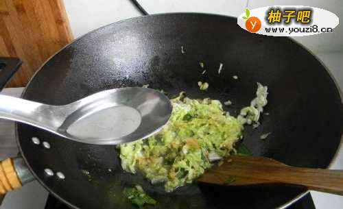 5放入圆白菜丝。