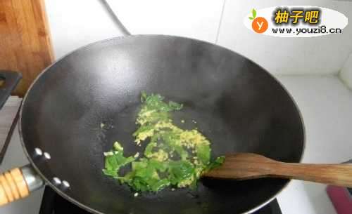 4放入小葱碎和姜末炒香。