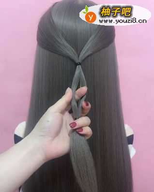 2接着,把固定好的这缕头发梳理整齐,然后大约在中间的部位,用皮筋绑好