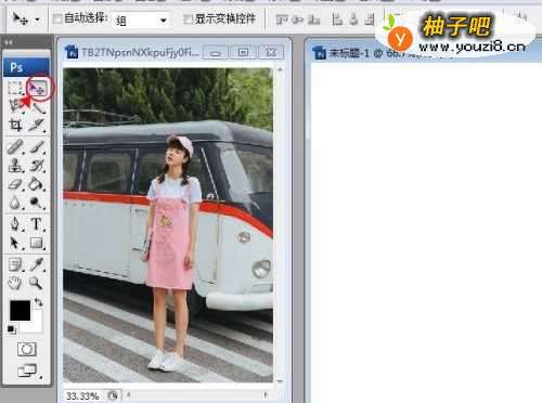 7点击移动工具,把要原图移动到刚才新建的空白图片里面(如图2)