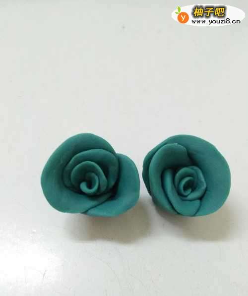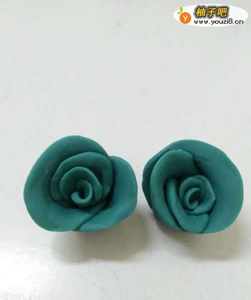 将彩泥捏成大小不等的圆片,再卷成玫瑰花,特别好看,下面就做两朵蓝玫瑰。