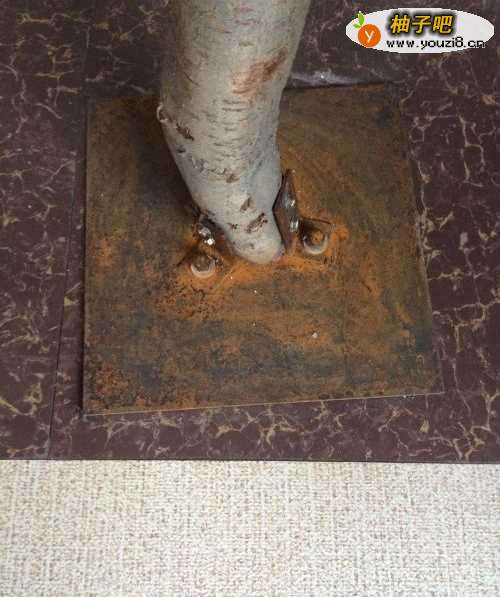 6想要将树枝摆放到地面上,需要一块铁板固定,将铁板放到地面,并将树枝的底部用螺丝拧在一起。