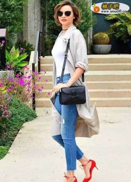 搭配四:米色尖头高跟鞋+破洞紧身牛仔裤紧身牛仔裤适合腿细的女生穿,紧身牛仔裤配上破洞的设计更显时髦感,搭配一双米色尖头高跟鞋,穿出来时尚、休闲又很个性。