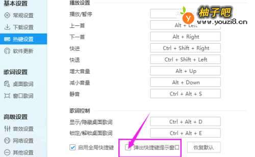 7点击【弹出快捷键提示窗口】。然后点击【应用】,设置就会马上生效~