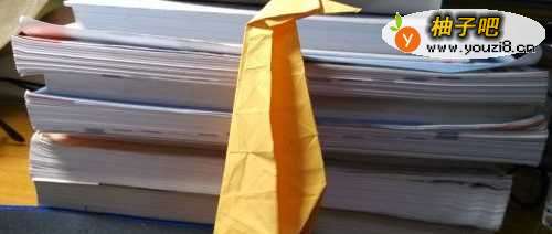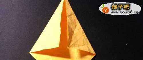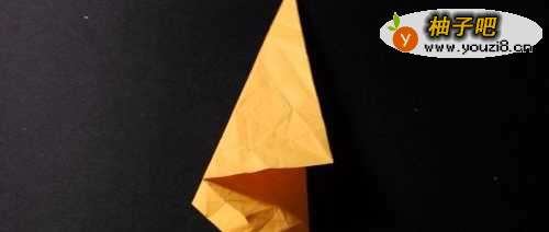 6把尖端向内凹折两次后再拉出完成企鹅的嘴部。