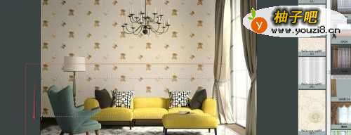 5也可以添加墙裙腰线。沿选区边缘选定一起点,鼠标左击向下推拽至墙脚,再铺贴其它款壁纸即可。腰线同理;