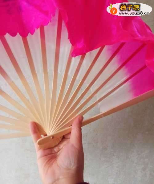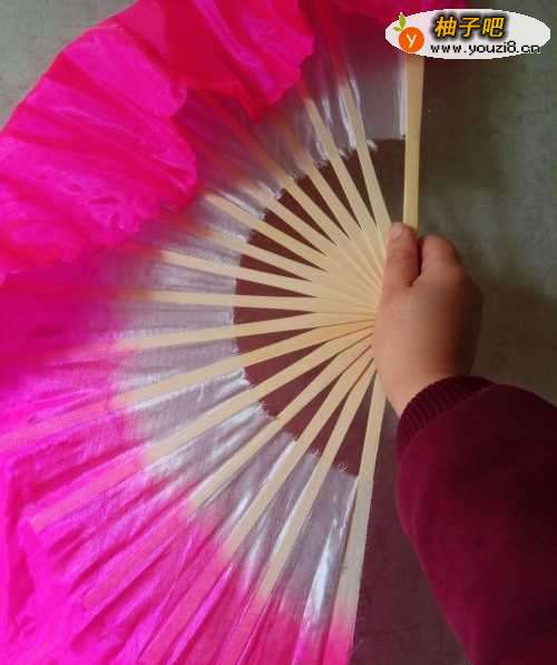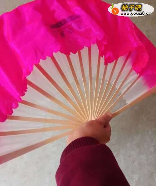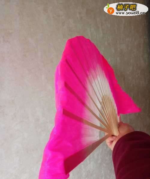 2握扇在跳舞中,多用于推扇的动作,因为胳膊向远处推后,手指方便合扇、打开收回自如,这是在跳舞中常用的手法动作。