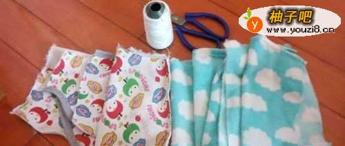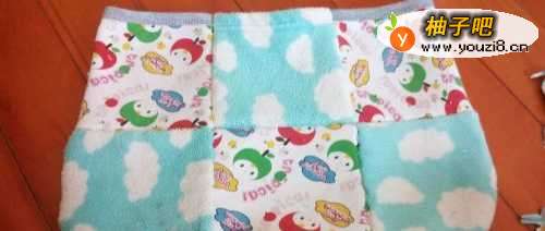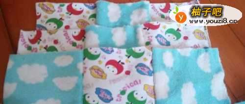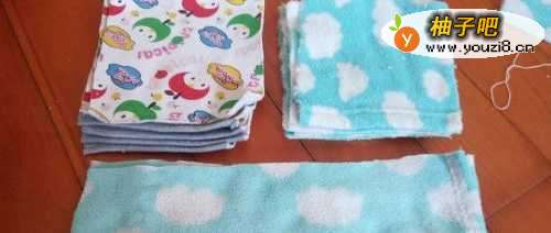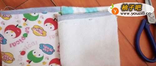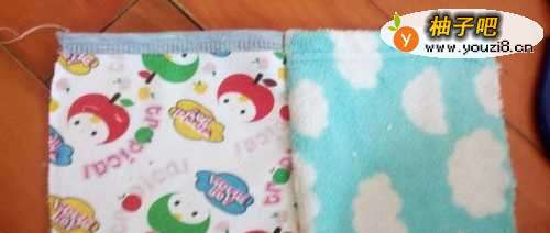 12把两面正面对正面,叠好,把下面的两个角剪成圆角,然后缝合