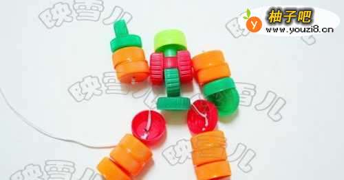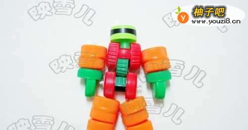 这个色彩鲜艳的机器人全身关节都是可以活动的,像个变形金刚一样。而且它使的材料十分简单,只是平时我们丢弃的汽水瓶盖。一起来动手做一做吧。