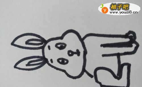 4在兔子头部的下方画出兔子的身体和两条前腿,兔子的两条前腿大小和形状一致。
