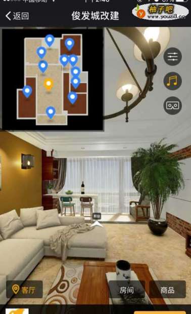 6这就是生成的全屋全景图,操作简单快速,展示效果较好,还可以直接通过分享出去的全景图预约设计、在线咨询客服。打扮家的VR设计软件最大的优势与特点就是可以进行真VR虚拟现实体验,戴上头盔设备就可以进入虚拟空间自由走动,还可以看电视、开关灯,实时交互,是比较大的一个亮点。