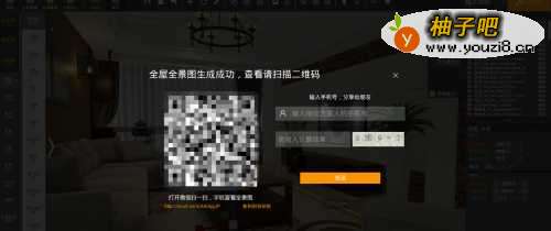 4保存,点击渲染选择全屋全景图。同时还可生成效果图、单屋全景图等,生成全屋全景图大概需要60s时间,生成前可对全景图进行相关设置,对方案的简介说明以及分享的有效时长。