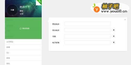 6进入工作区,填写联系方式,如:电话、传真、QQ、地址、LOGO等。
