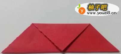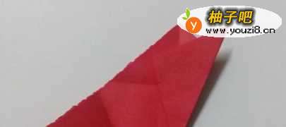 3展开,把右边的角对折过去,再展开,把左边的角折到正中间。
