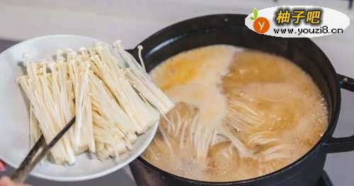 6待水再次沸腾后加入生菜和鲜虾即可。