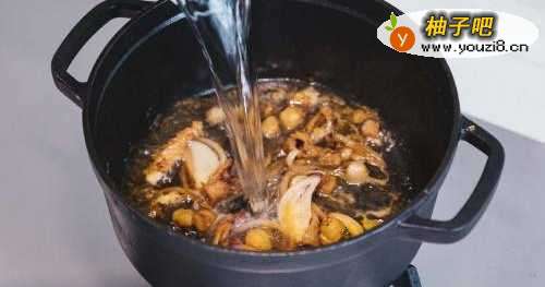 将干贝和鱿鱼放进锅里煎炒2分钟。