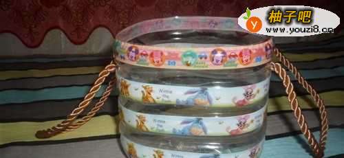 将食用油桶身裁剪掉,适当的做些装饰,加上提手,就可以做成一个容易,用来盛放东西或者小孩的玩具都是很不错的。