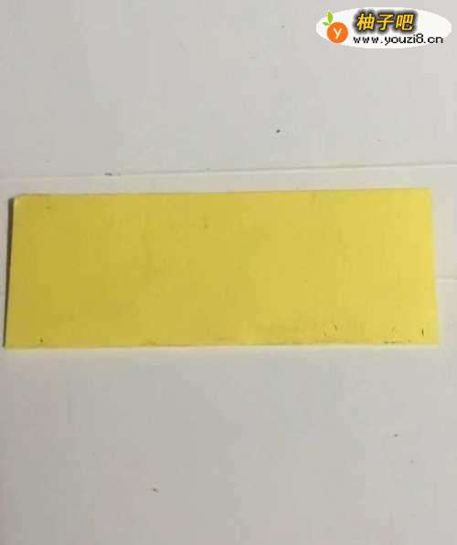 第一步 用一张12厘米长X10厘米宽的长方形红色彩纸 把它平放 然后再从下向上对边对折