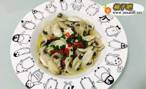 6最后一步就是把调好的葱油直接浇在口蘑上面,搅拌均匀即可食用啦!