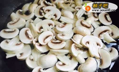 2沥干水分的口蘑就可以分别切成片备用了,切片的时候注意下厚度,不要太厚也不要太薄,一般一个口蘑切3刀,4片即可。