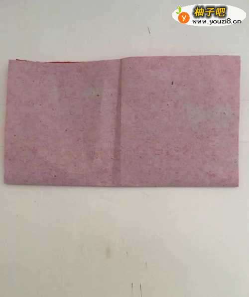 第一步 首先把一张16厘米X16厘米的正方形红色彩纸 从下向上对边折叠整齐