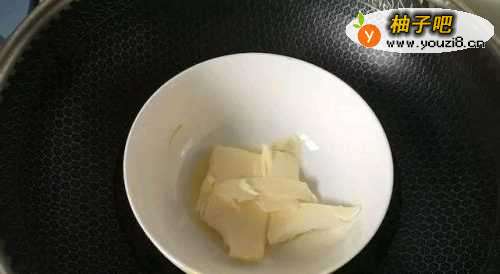 2三十克黄油放入大碗中,锅中放入清水,把碗放入锅中,中火加热至黄油溶化即可。