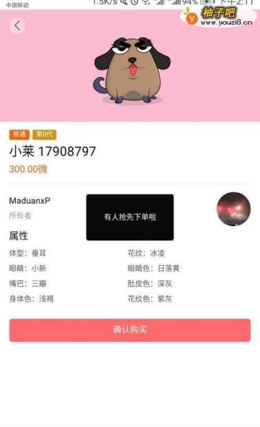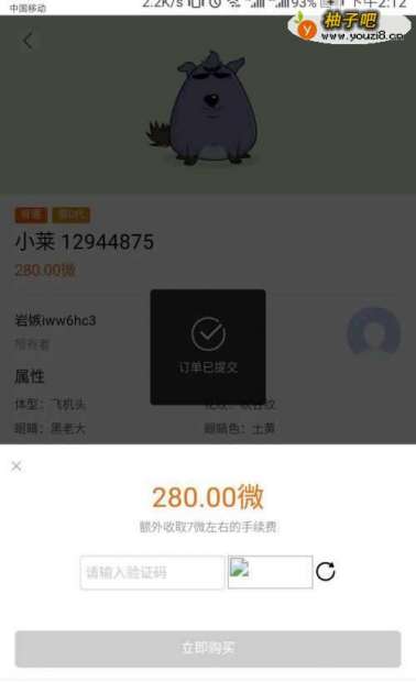 3退出来找另一只狗狗,一直找到成功,一般往下拉价格可以接受的就购买,成功就会显示订单已提交,回取7微左右的手续费(好像无论价格高低都是);