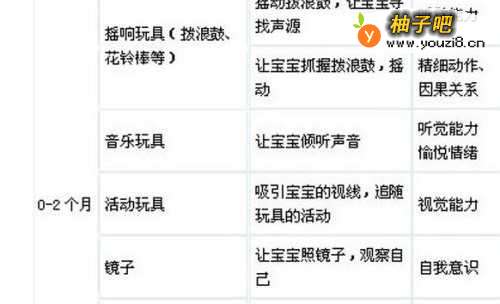 0-2个月的宝宝他们也是需要玩具的,新生儿的学习能力强,他们有自己独特的方式来认识周围的世界。即便是不到一个月的宝宝,吃饱睡足后也能够积极吸收周围环境中的信息。上附图片就是适合0-2岁宝宝使用的玩具,家长可以根据指示和宝宝的实际情况购买玩具,锻炼宝宝的各种能力。