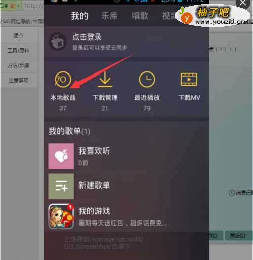 2第二步,在乐库页面中,点击打开“我的”页面。点击打开“本地歌曲”音乐,找到你想要分享的那一首歌后面标志,点击一下。如图所示: