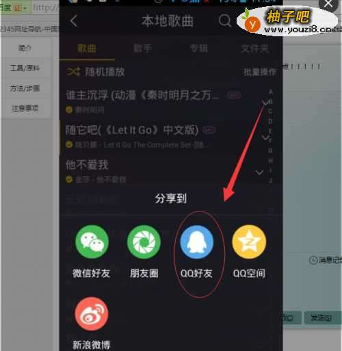 6第六步,要是想要分享给单一的朋友的,同样是在分享小页面中,直接点击你所在的QQ或是微信,例如以下是小编分享给QQ好友的操作。点击“QQ好友”后,会跳转到QQ好友页面,找到你想要分享的朋友帐号点击一下。如图所示: