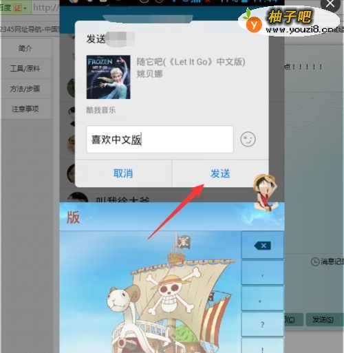 7第七步,写你想要分享给她的理由,然后点击发送即可,在聊天记录中,可以直接看到你所分享的音乐了。如图所示: