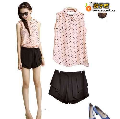 (6) 呼应协调均衡法前后上下呼应装饰,能显示和谐统一的美感。例如,上衣黑底红白花,黑色裙子,内衣是黑底白花,红直条花纹,配上红色帽子,黑细边,红色手提包和皮带,这种黑、白上下呼应,容易使人产生整体协调快感。 (7) 衔接贯通修饰法 起到牵连附和作用。例如:穿着黄色衬衫,上下深紫色裙子,色彩强烈对比,采用黑或白或金色的皮带,取得上下衔接,能体现统一和谐的效果。