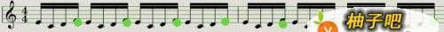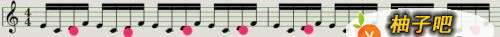 7(每一组十六分音符的第一小拍标注蓝色的标记的位置,表示重音,也就是和节拍器拍点的位置)
