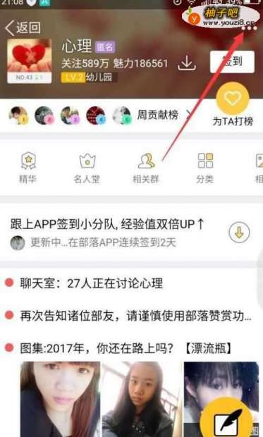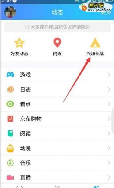 2第二,进入动态界面后,点击右侧“兴趣部落“。