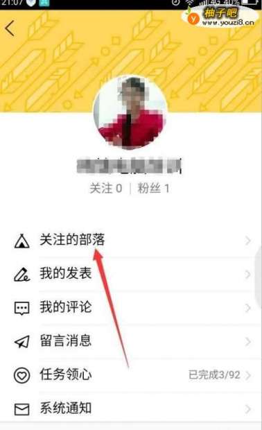 4第四,点击第一个项目”关注的部落“,这里就会显示你关注过的所有部落。点击要取消关注的部落名称。