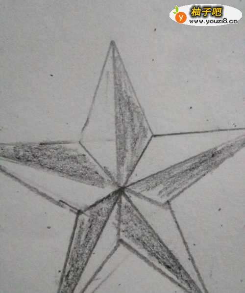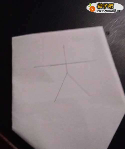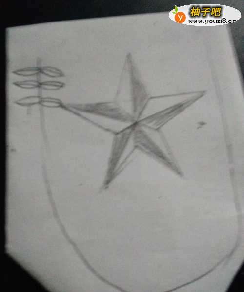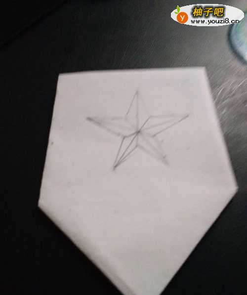 3翻过来画上一些花纹和图案,最好有自己的创意。下图是五角星图案方案。如图画几根线条。