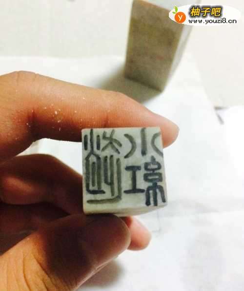 4用一点水浸湿宣纸,再用手用力按,使墨水印在印章上。