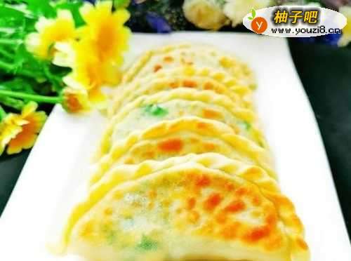 韭菜盒子面上刷少量的油,底部煎2分钟定型,转小火。