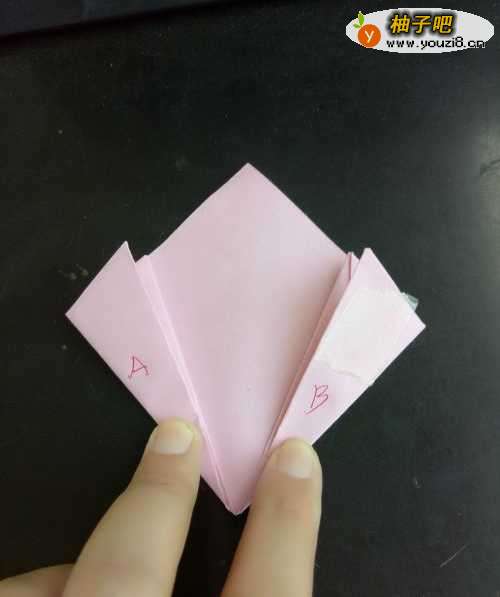 4在B的位置贴双面胶,把AB粘合。形成花瓣,调整形状。