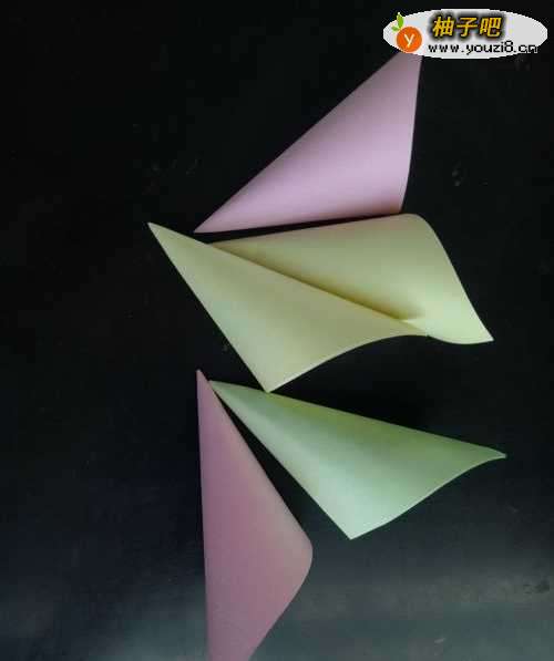 5同样的方法再折叠四个。如图二在每个花瓣上粘双面胶,把五个花瓣粘成一朵樱花。