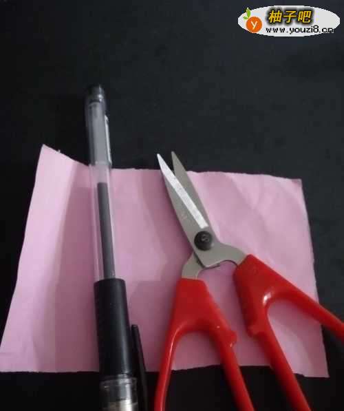 第一步,我们先把需要使用的剪刀,纸张和笔准备出来。